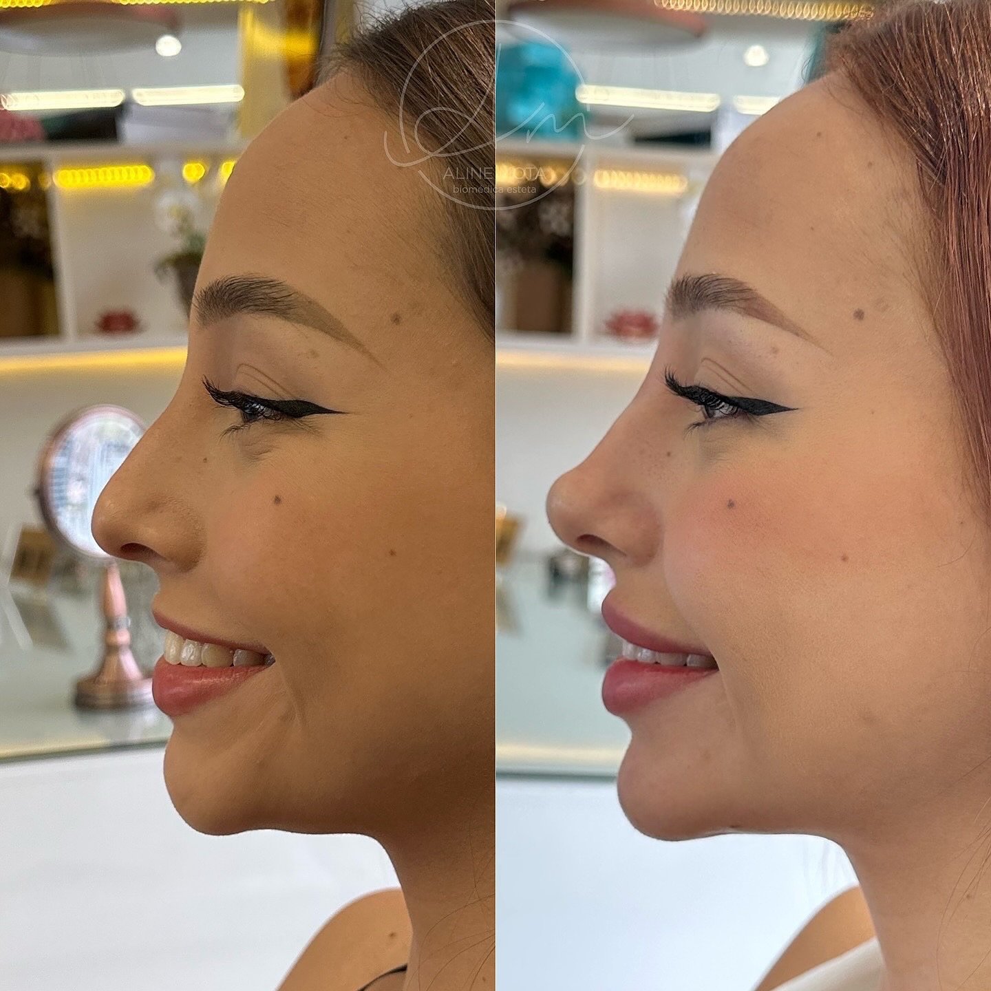 Proporção Nariz, Lábio e Mento, deixando o perfil mais Harmônico.